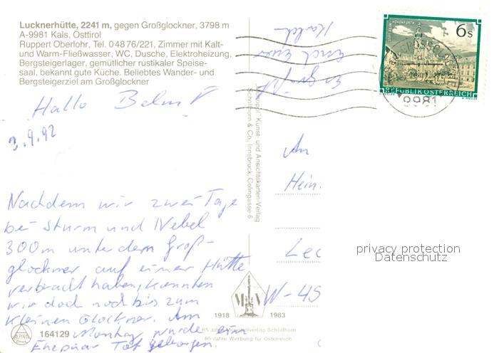 73291285 alte Postkarte Kals Grossglockner Lucknerhuette postalisch gelaufen Erhaltung siehe scans [LiesaD40] KatCode: 11390333070712