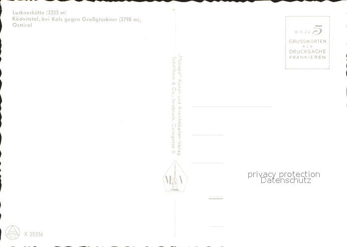 72921226 Kals Grossglockner Lucknerhuette im Koednitztal postalisch nicht gelaufen Erhaltung siehe scans [LiesaD40] KatCode: 11390333070712