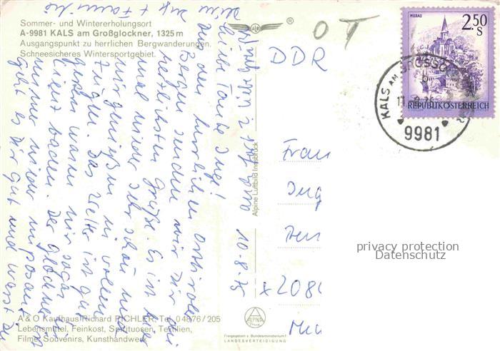 74156342 alte Postkarte Kals-Lesach Grossglockner Tirol AT Kals Grossglockner Alpenort Alpen Tal Wald Wiesen Osttirol Bergdorf postalisch gelaufen Fliegeraufnahme Erhaltung siehe scans [Karloger] KatCode: 11390333070712