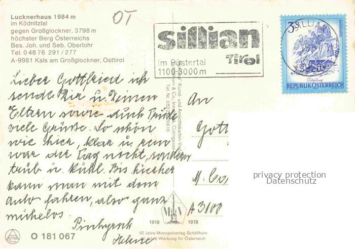 74156345 alte Postkarte Kals-Lesach Grossglockner Tirol AT Lucknerhaus Berghuette Koednitztal Grossglockner Felsbloecke Bergpanorama Osttirol postalisch gelaufen Erhaltung siehe scans [Karloger] KatCode: 11390333070712