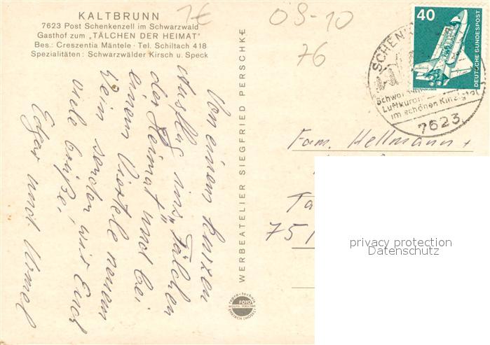 73659367 alte Postkarte Kaltbrunn Schenkenzell Gasthof zum Taelchen der Heimat Landschaftspanorama postalisch gelaufen Erhaltung siehe scans [FriedD77] KatCode: 11110008325050