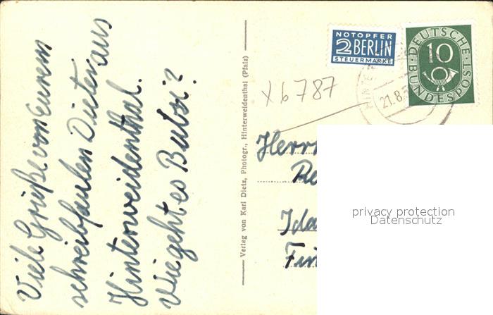 41793214 alte Postkarte Kaltenbach Hinterweidenthal postalisch gelaufen Erhaltung siehe scans KatCode: 11110007340020