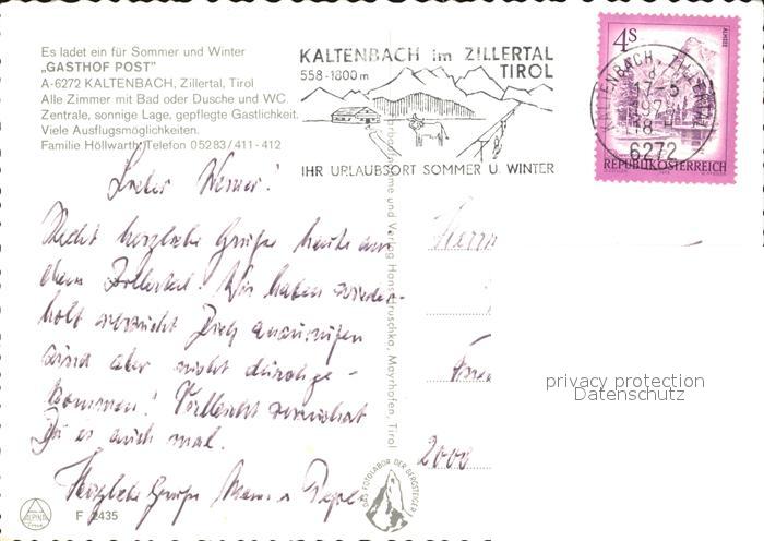 72428809 alte Postkarte Kaltenbach Tirol Gasthof Post postalisch gelaufen Erhaltung siehe scans KatCode: 11390335070918