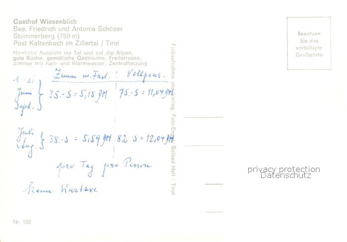 13102280 Kaltenbach Tirol Gasthof Wiesenblick Stummerberg postalisch nicht gelaufen Erhaltung siehe scans [NatalD47] KatCode: 11390335070918