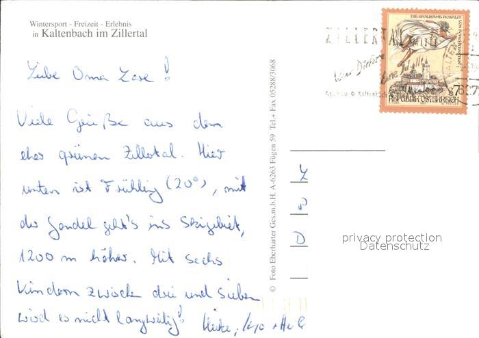 72437429 alte Postkarte Kaltenbach Tirol Ski Kirche postalisch gelaufen Erhaltung siehe scans KatCode: 11390335070918