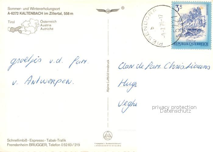 73219750 alte Postkarte Kaltenbach Tirol Sommer und Wintererholungsort im Zillertal Fliegeraufnahme postalisch gelaufen Erhaltung siehe scans [FriedD77] KatCode: 11390335070918