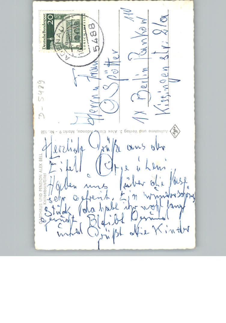 31138923 Kaltenborn Adenau Gasthaus und Pension Alex Bell postalisch nicht gelaufen KatCode: 11110007131037