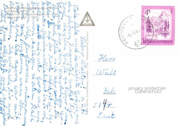 72752578 alte Postkarte Kaltenbrunn Tirol Wallfahrtskirche postalisch gelaufen Erhaltung siehe scans [LiesaD40] KatCode: 11390