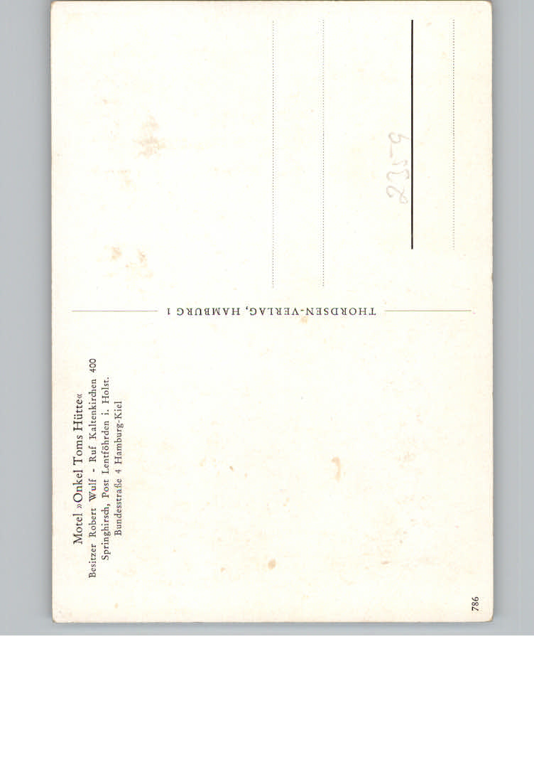 31119870 Kaltenkirchen Holstein Motel Onkel Tom postalisch nicht gelaufen KatCode: 11110001060044