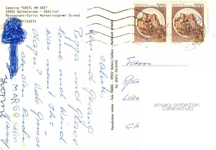 old postcard Kalterer See Suedtirol Camping Gretl am See postalisch gelaufen Erhaltung siehe scans [NatalD47]