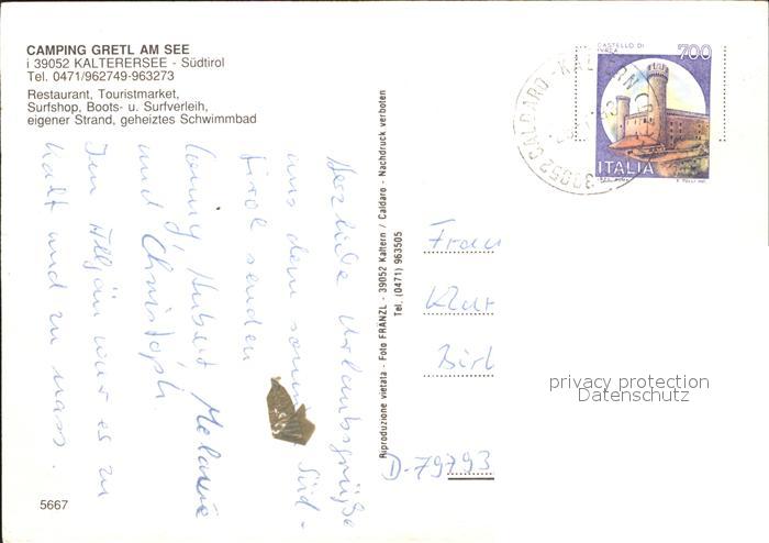 old postcard Kalterer See Suedtirol Camping Gretl am See Schwimmbad Panorama postalisch gelaufen Erhaltung siehe scans