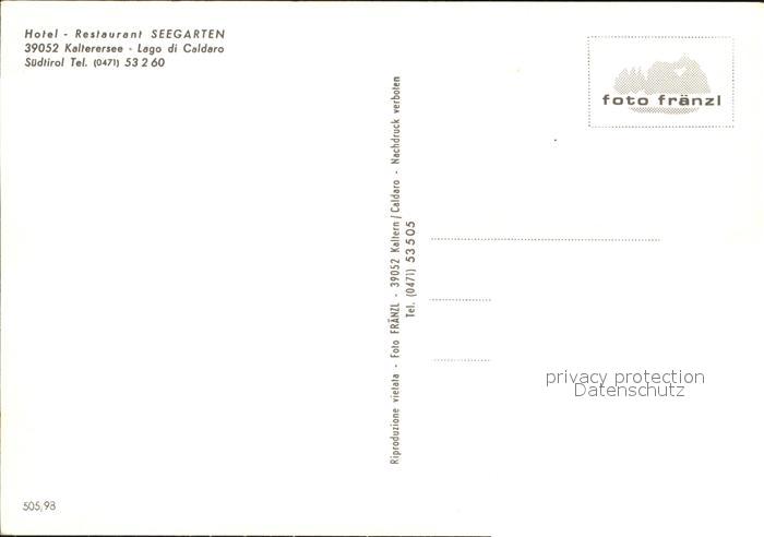 Kalterer See Suedtirol Hotel Restaurant Seegarten Terrasse Liegewiese postalisch nicht gelaufen Erhaltung siehe scans