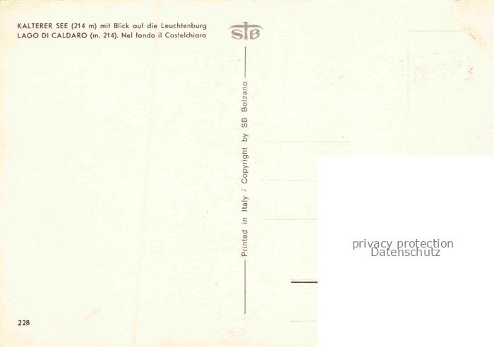 74079682 Kalterer See Suedtirol mit Blick auf die Leuchtenburg postalisch nicht gelaufen Erhaltung siehe scans [WerneD78] KatCode: 11240