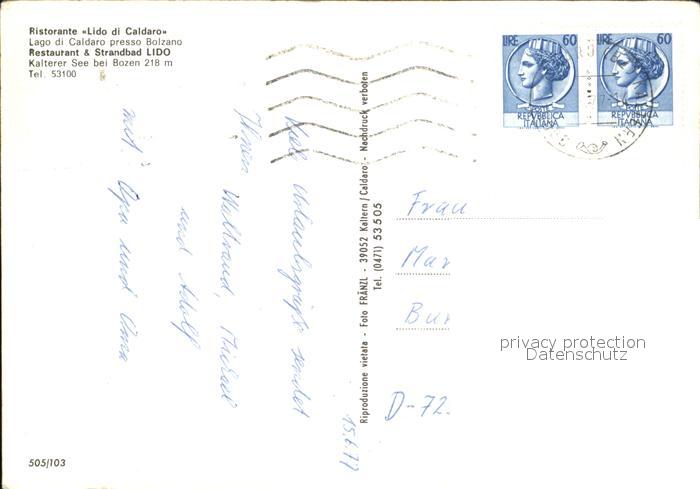 old postcard Kalterer See Suedtirol Restaurant Lido di Caldaro postalisch gelaufen Erhaltung siehe scans