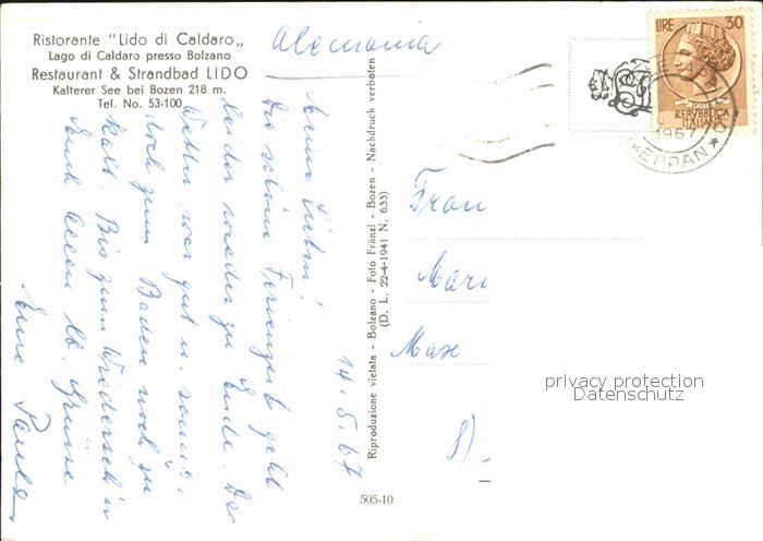 old postcard Kalterer See Suedtirol Restaurant Lido postalisch gelaufen Erhaltung siehe scans