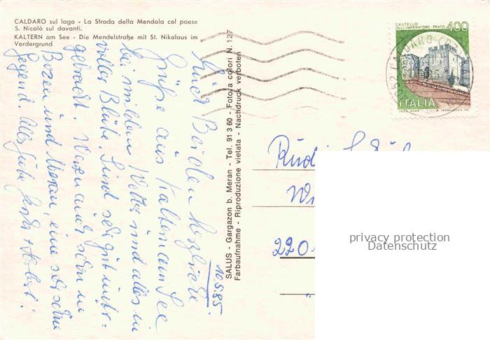 74153208 old postcard Kaltern Caldaro Suedtirol IT Mendelstrasse mit St Nikolaus Fliegeraufnahme postalisch gelaufen Erhaltung siehe scans [WerneD78] KatCode: 11240