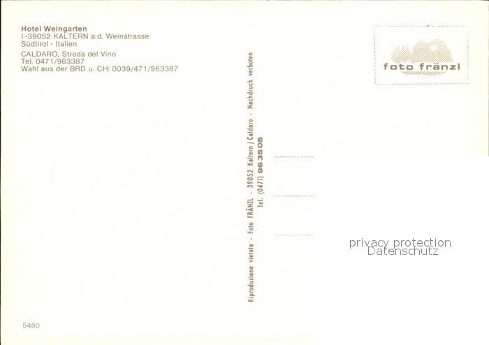 Kaltern Weinstrasse Tirol Hotel Weingarten Hallenbad Panorama See Alpen postalisch nicht gelaufen Erhaltung siehe scans