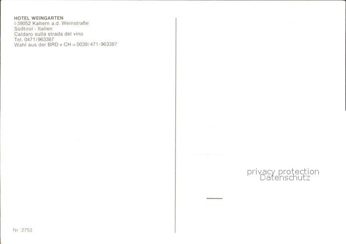 Kaltern Weinstrasse Tirol Hotel Weingarten postalisch nicht gelaufen Erhaltung siehe scans