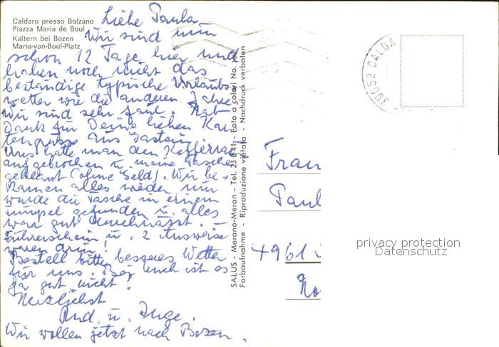 Kaltern Weinstrasse Tirol Maria von Boul Platz Brunnen postalisch nicht gelaufen Erhaltung siehe scans