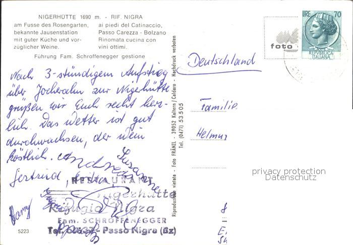old postcard Kaltern Weinstrasse Tirol Nigerhuette Terrasse am Rosengarten postalisch gelaufen Erhaltung siehe scans