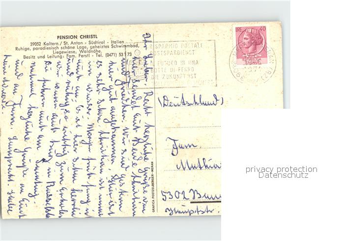 old postcard Kaltern Weinstrasse Tirol Pension Christl postalisch gelaufen Erhaltung siehe scans