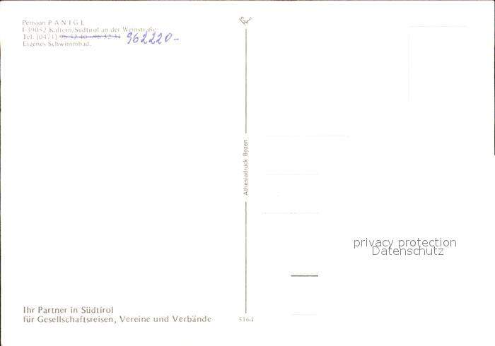 Kaltern Weinstrasse Tirol Pension Panigl postalisch nicht gelaufen Erhaltung siehe scans