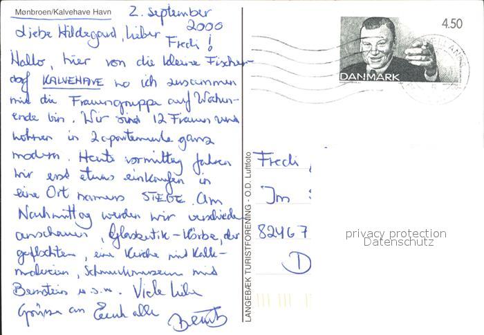 old postcard Kalvehave Fliegeraufnahme mit Hafen und Bruecke postalisch gelaufen Erhaltung siehe scans