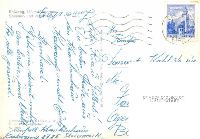 72665980 alte Postkarte Kalwang Fliegeraufnahme postalisch gelaufen Erhaltung siehe scans [WerneD78] KatCode: 11390223061105