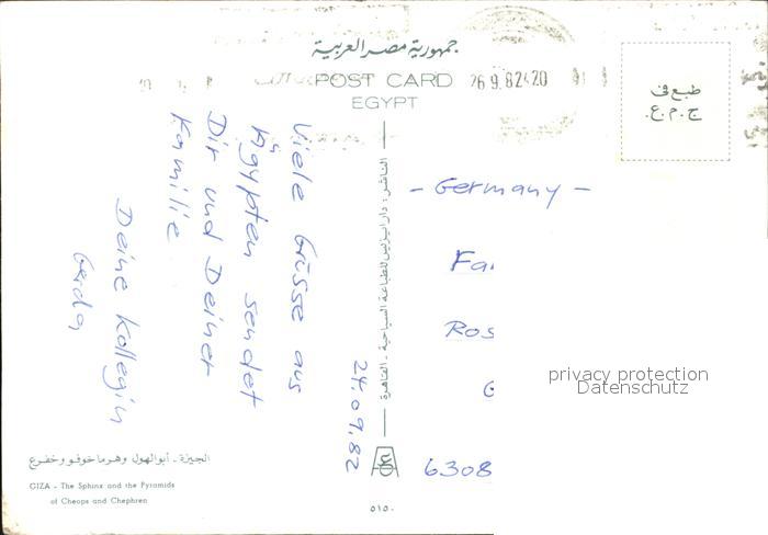 alte Postkarte Kamel Camel Chameau Giza Sphinx Pyramids of Cheops and Chephren postalisch gelaufen Erhaltung siehe scans