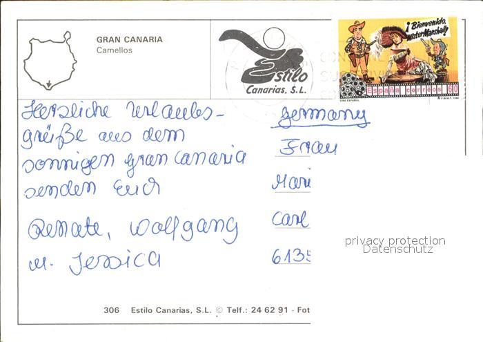 alte Postkarte Kamel Camel Chameau Gran Canaria postalisch gelaufen Erhaltung siehe scans