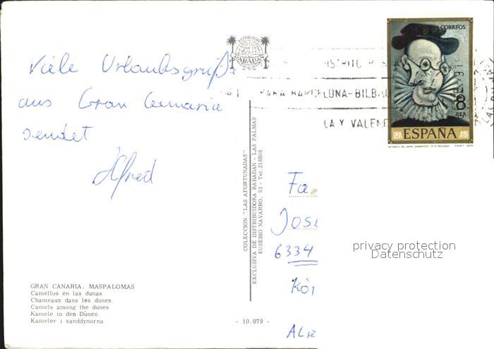 alte Postkarte Kamel Camel Chameau Gran Canaria Maspalomas postalisch gelaufen Erhaltung siehe scans