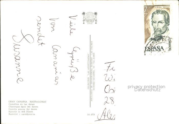 alte Postkarte Kamel Camel Chameau Gran Canaria Maspalomas postalisch gelaufen Erhaltung siehe scans