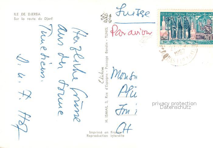 alte Postkarte Kamel Camel Chameau Ile de Djerba Route de Djorf postalisch gelaufen Erhaltung siehe scans [PaolaD17]