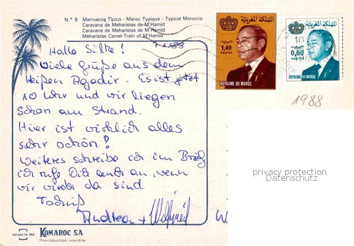 alte Postkarte Kamel Camel Chameau Maroc Caravane de Meharistas de M’Hamid postalisch gelaufen Erhaltung siehe scans [PaolaD17]