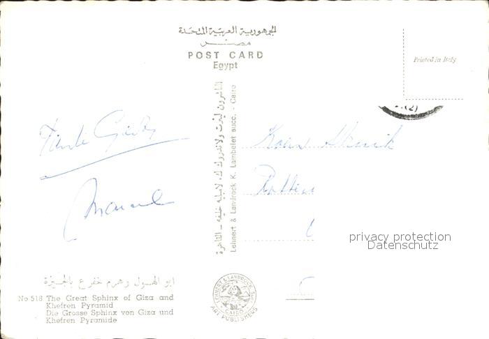 alte Postkarte Kamel Camel Chameau Sphinx of Giza Khefren Pyramid postalisch gelaufen Erhaltung siehe scans