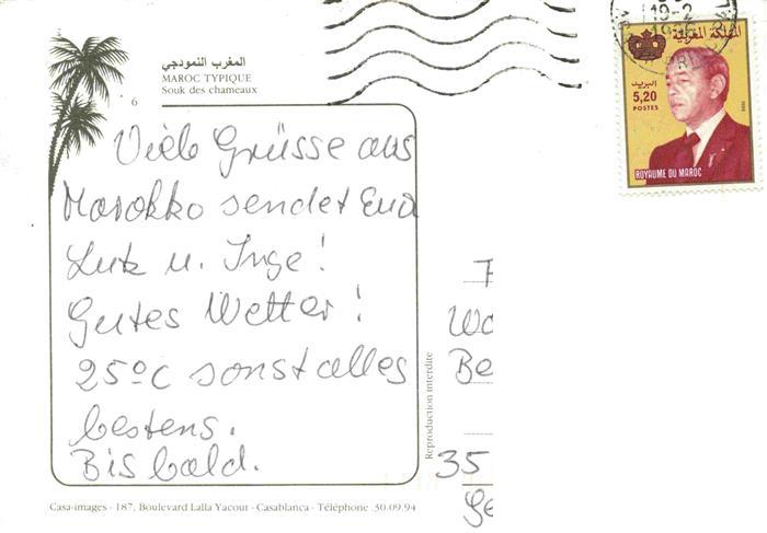 74028222 alte Postkarte Kamele Camel Chameau– Maroc Marokko Souk postalisch gelaufen Erhaltung siehe scans [SanaeD93] KatCode: 22540000001300
