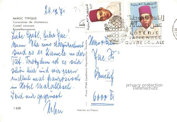 74017030 alte Postkarte Kamele Camel Chameau– Maroc Typique Karawane postalisch gelaufen Erhaltung siehe scans [IrynaD87] KatCode: 22540000001300