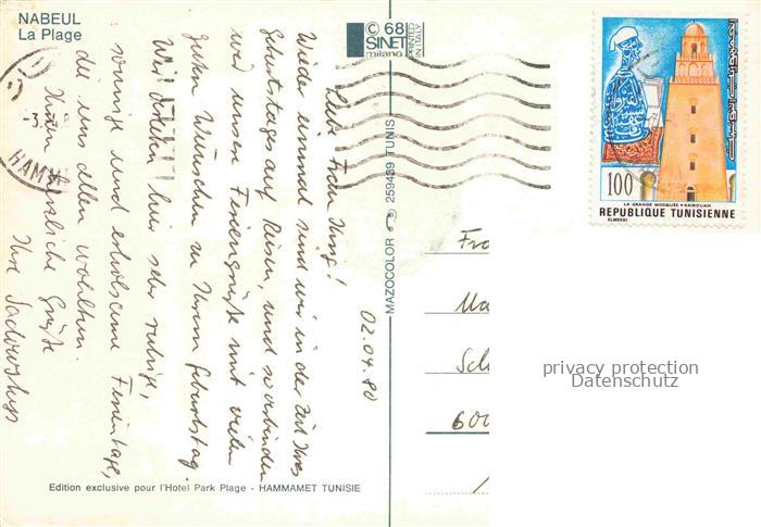 74023260 alte Postkarte Kamele Camel Chameau– Nabeul Plage Tunisien postalisch gelaufen Erhaltung siehe scans [SanaeD93] KatCode: 22540000001300