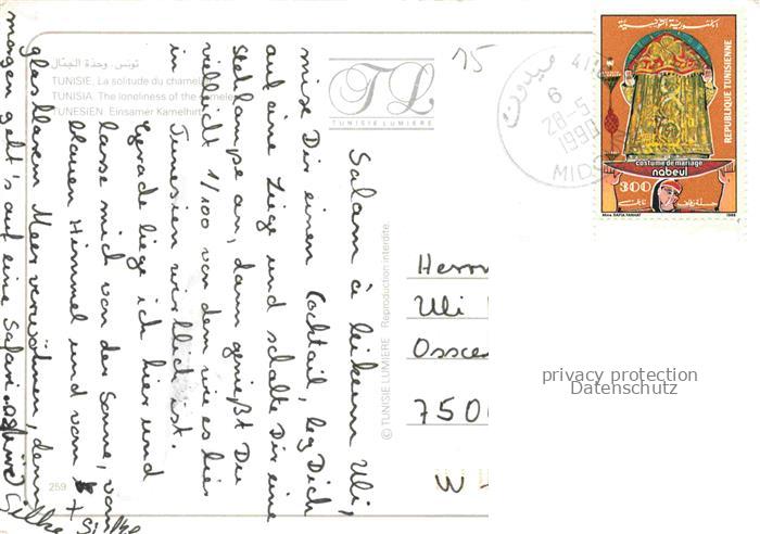 74017034 alte Postkarte Kamele Camel Chameau– Tunesien Einsamer Kamelhirt postalisch gelaufen Erhaltung siehe scans [IrynaD87] KatCode: 22540000001300