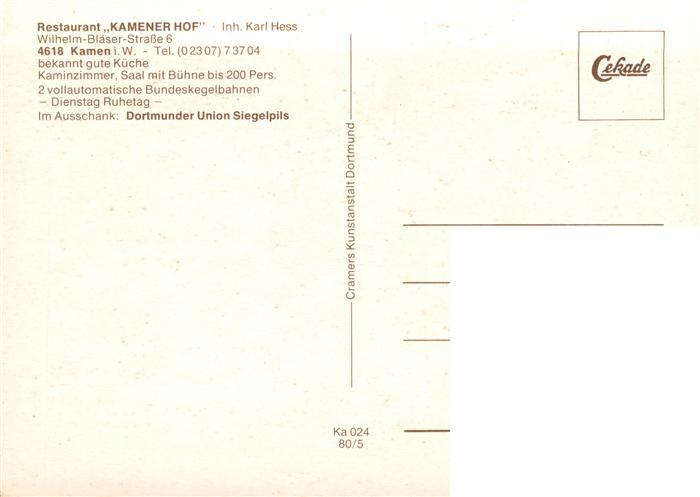 73897092 Kamen Westfalen Restaurant Kamener Hof Gastraeume Kegelbahn Saal mit Buehne postalisch nicht gelaufen Erhaltung siehe scans [WerneD78] KatCode: 11110005978020