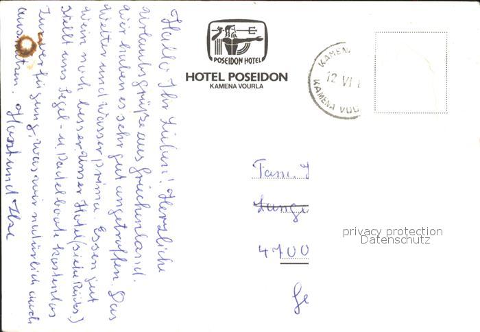 old postcard Kamena Yourla Hotel Poseidon Strandpartie postalisch gelaufen Erhaltung siehe scans