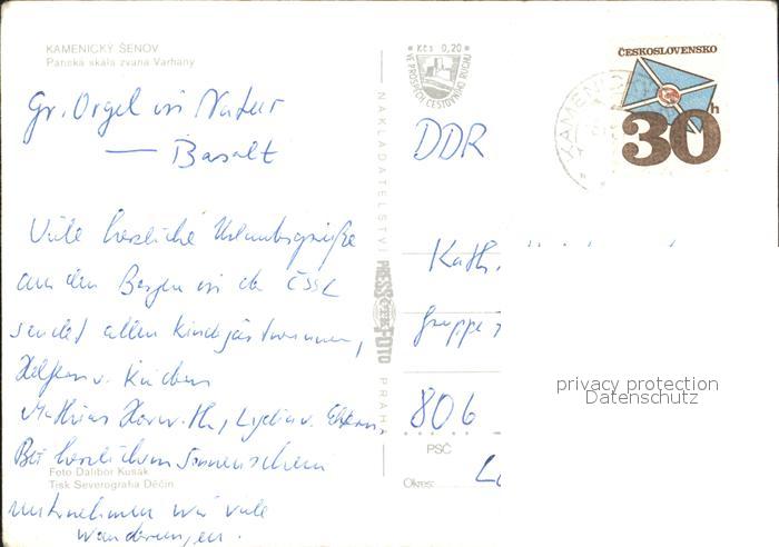 old postcard Kamenicky senov Panska skala Varhany postalisch gelaufen Erhaltung siehe scans