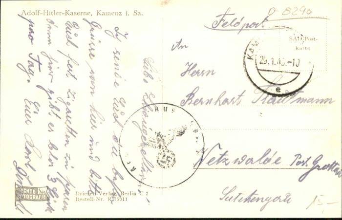 40955118 Kamenz Sachsen A. H. Kaserne postalisch gelaufen Alte Ansichtskarte Postkarte alte Postkarte Katcode 11110014292210