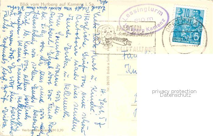 72634122 alte Postkarte Kamenz Sachsen Blick vom Hutberg postalisch gelaufen Erhaltung siehe scans [AndreD76] KatCode: 11110014292210