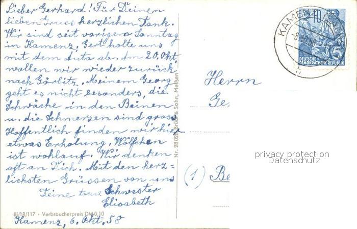 72075857 alte Postkarte Kamenz Sachsen Herrental Hauptkirche und Katechismuskirche postalisch gelaufen Erhaltung siehe scans KatCode: 11110014292210