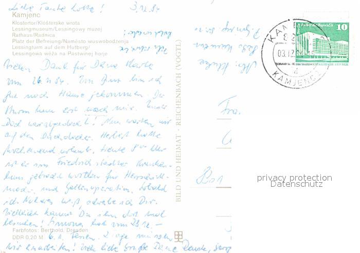 72630149 alte Postkarte Kamenz Sachsen Klostertor Lessingturm Lessingmuseum postalisch gelaufen Erhaltung siehe scans [LiesaD40] KatCode: 11110014292210
