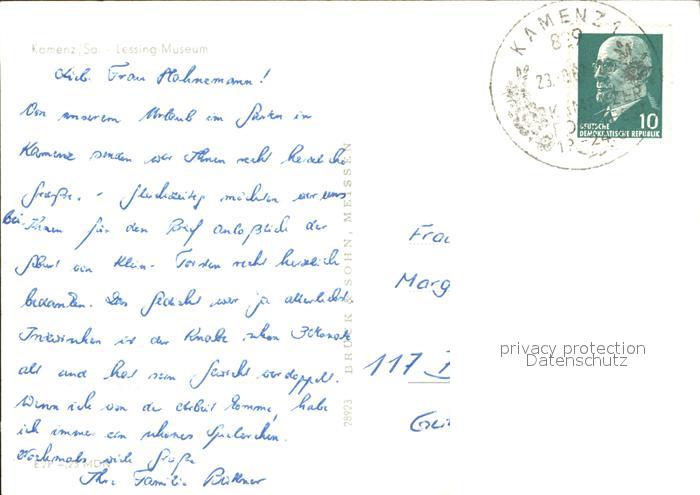 72439842 alte Postkarte Kamenz Sachsen Lessing Museum postalisch gelaufen Erhaltung siehe scans KatCode: 11110014292210