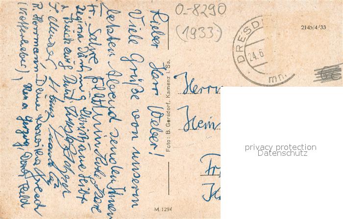 73697774 alte Postkarte Kamenz Sachsen Schillerpromenade postalisch gelaufen Erhaltung siehe scans [LiesaD40] KatCode: 11110014292210