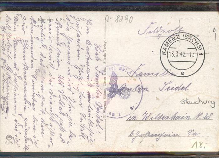 41301889 Kamenz Sachsen Thingplatz Rathaus mit Andreasbrunnen Ehrenmal Bahnhof Hutberg Stadtkirche Lessinghaus Feldpost KatCode 11110014292210