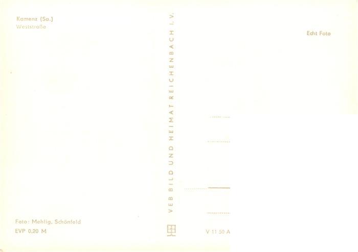 73864275 Kamenz Sachsen Weststrasse postalisch nicht gelaufen Erhaltung siehe scans [FriedD77] KatCode: 11110014292210